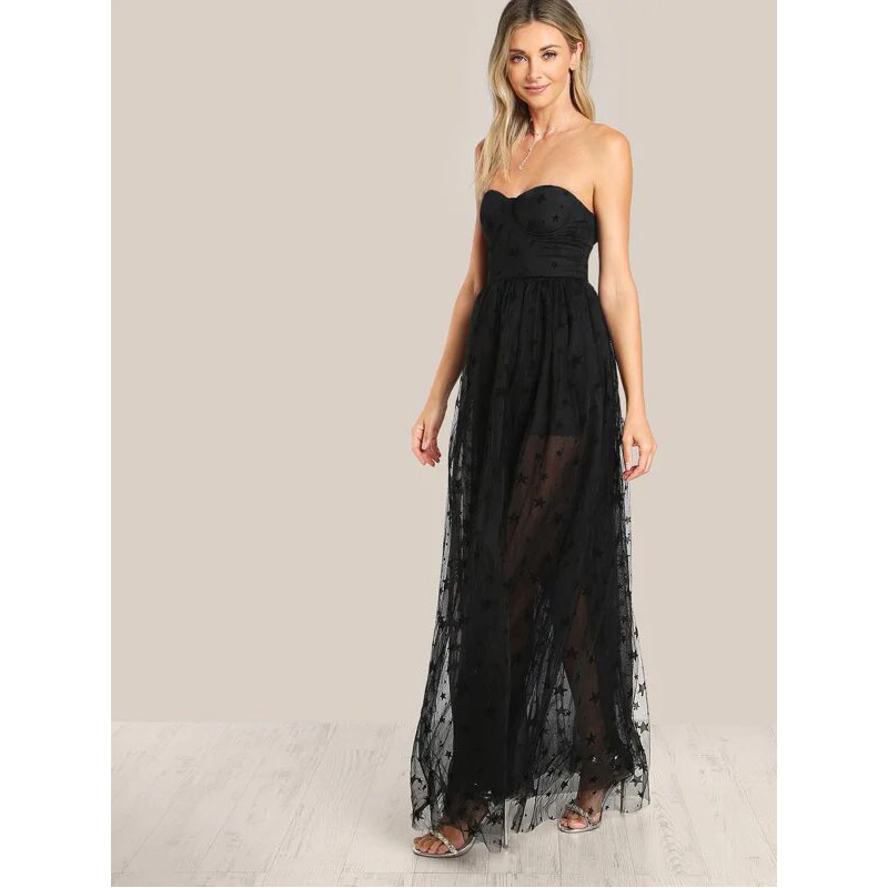 Vestido Largo Palabra De Honor Con Estrellas