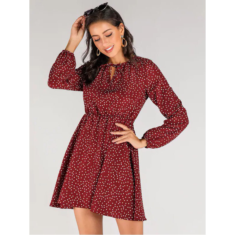 Vestido De Lunares De Cuello Con Cordón