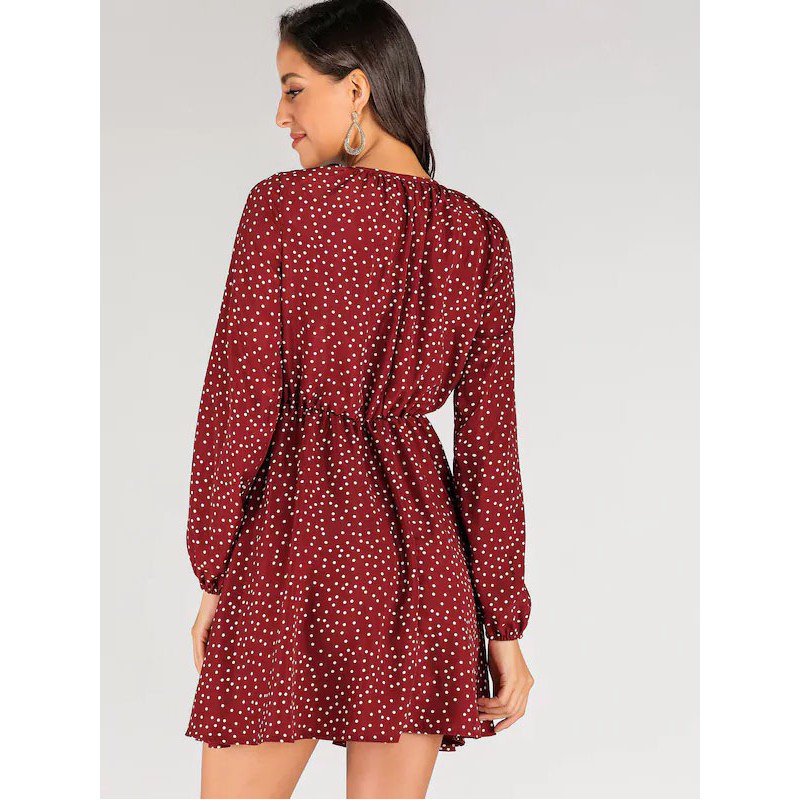 Vestido Volante Rígido Ditsy Floral Burdeos Casual