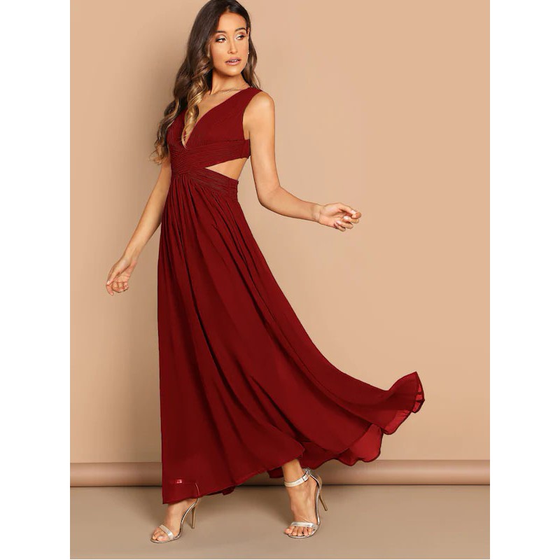 Vestido Fruncido Con Abertura Con Tiras Cruzadas De Cuello Profundo