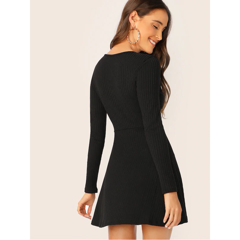 Vestido Tejido De Canalé Escote V